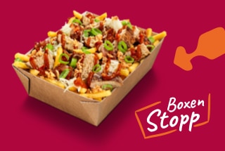 Neben den beliebten Klassikern wie Schnitzel mit Pommes frites oder Currywurst haben wir auch frische Salatbowls – gern auch mit Hähnchenfiletspitzen oder Falafel als Topping. Neu sind unsere BoxenStopp Gerichte – versuchen Sie doch zum Beispiel mal eine Schnitzel-Box Nordic Style: knackige Pommes frites, darauf ein knuspriges Schnitzel in Streifen geschnitten, darüber Krautsalat, knackige Radieschenscheiben, Frühlingszwiebeln und als Abschluss darüber eine unfassbare Honig-Senf Sauce… Sie werden es lieben. Und das Ganze in einer praktischen Box, damit Sie selbst entscheiden können, wo Sie es genießen möchten: drinnen, draußen oder unterwegs – ganz wie Sie wollen. Auch Vegetarier finden bei uns immer mehr tolle Gerichte – unser Veggie-Cheese Burger mit Brioche Bun wird Sie begeistern. Oder wer gern eine echte Hand-Voll Schmackofatz möchte, sollte sich unsere neuen HotDogs holen – mehr Wurst geht nicht.